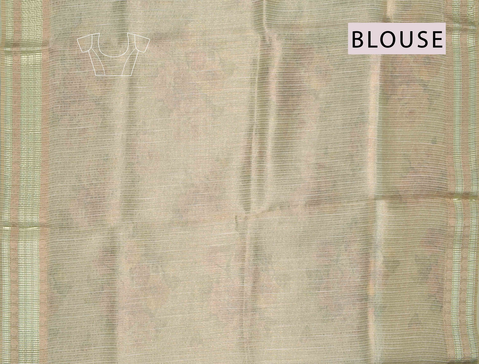 Sandal Semi Linen Floral Bunch Zari Lines Tissue Saree