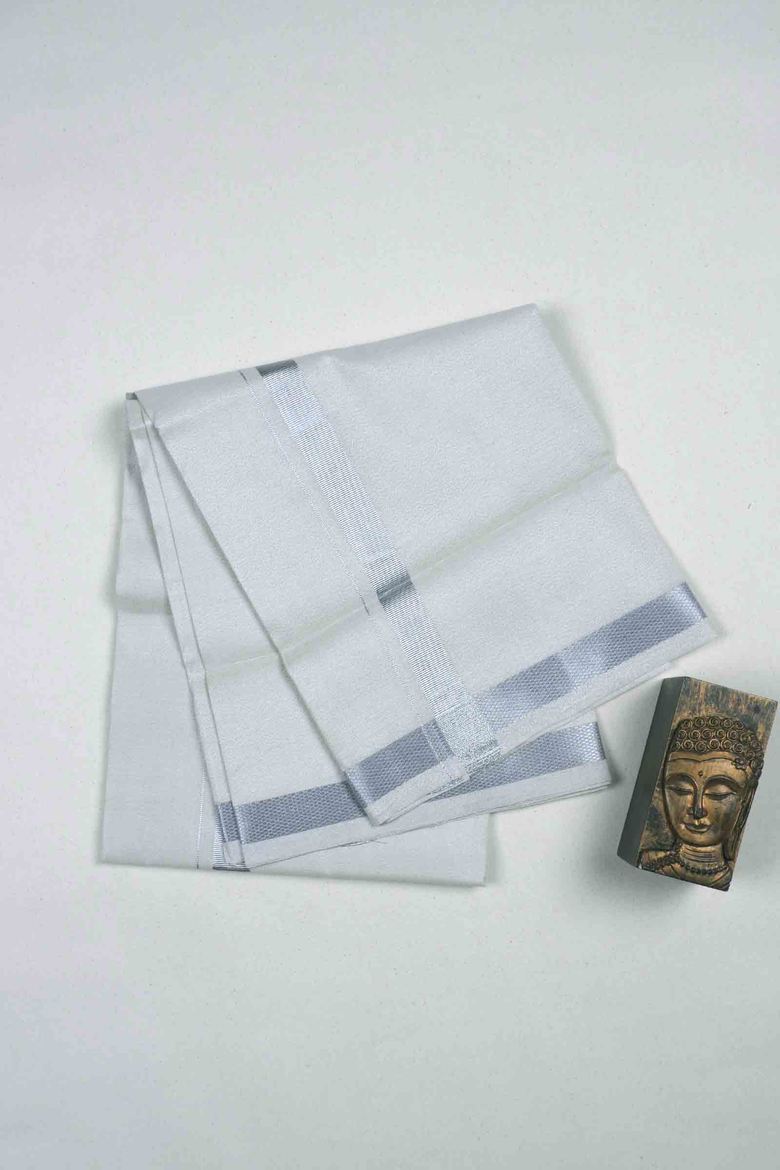 Light Silver Silk Traditional Silver Zari Border Mens Dhoti
