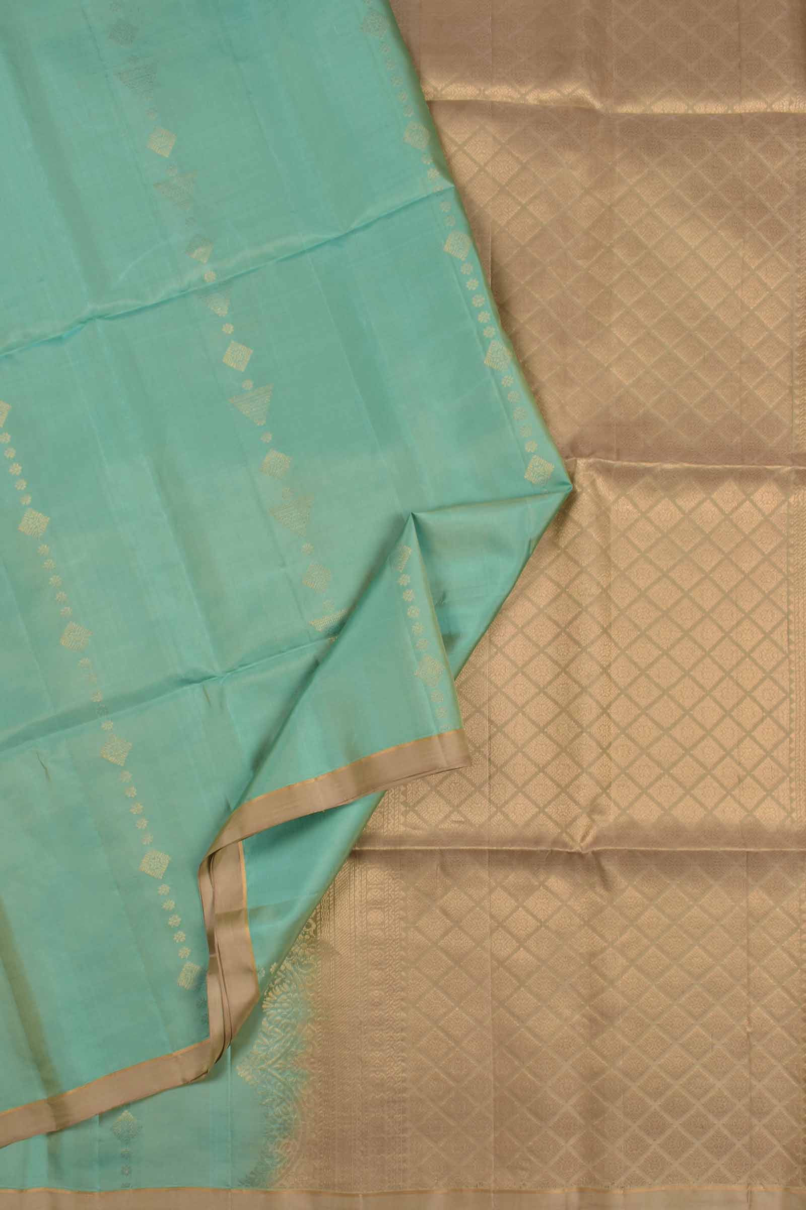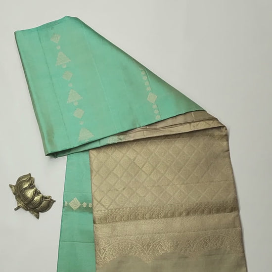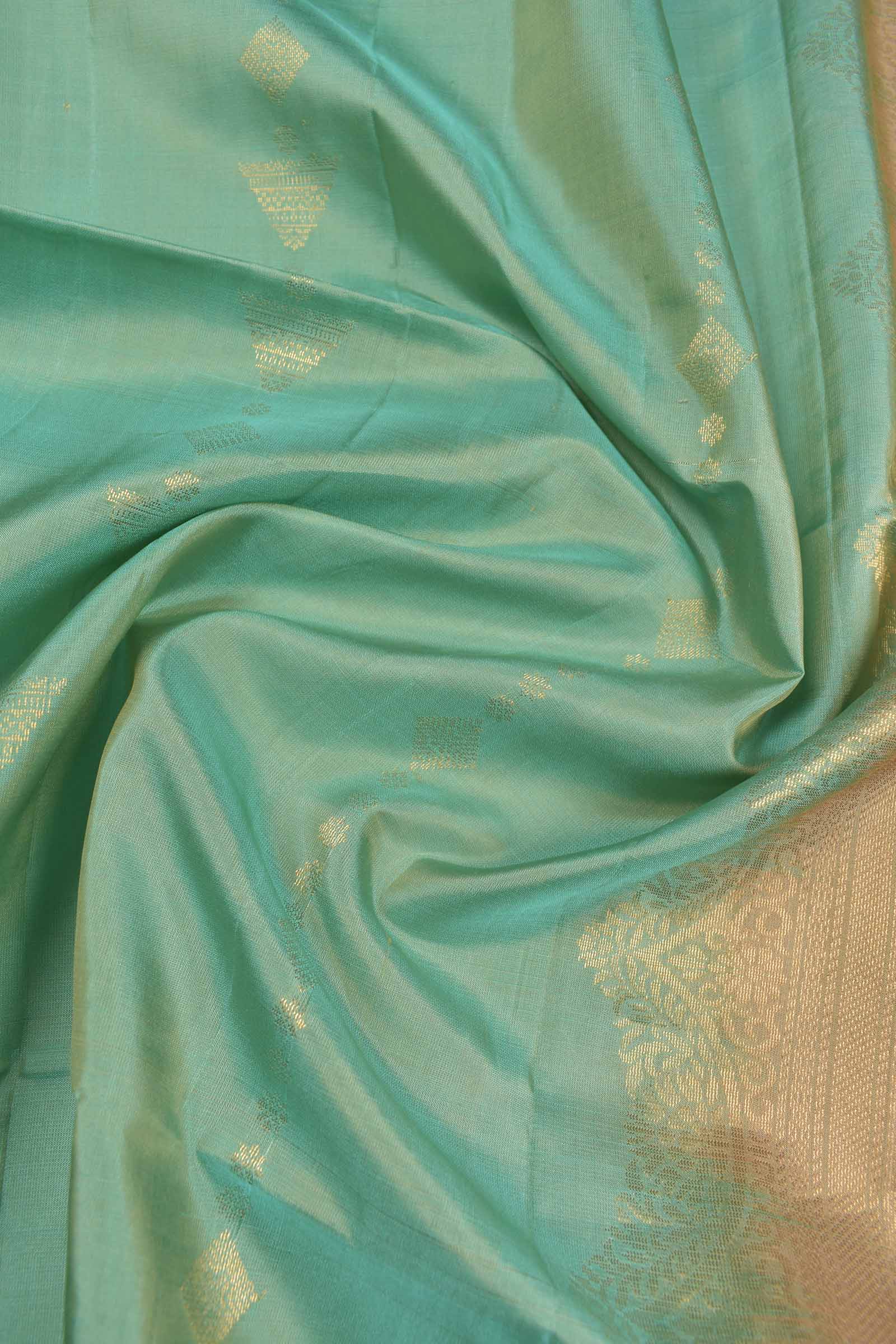 Turquoise Blue Pure Soft Silk Fancy Butta Dark Sandal Border Pallu Saree NAA188