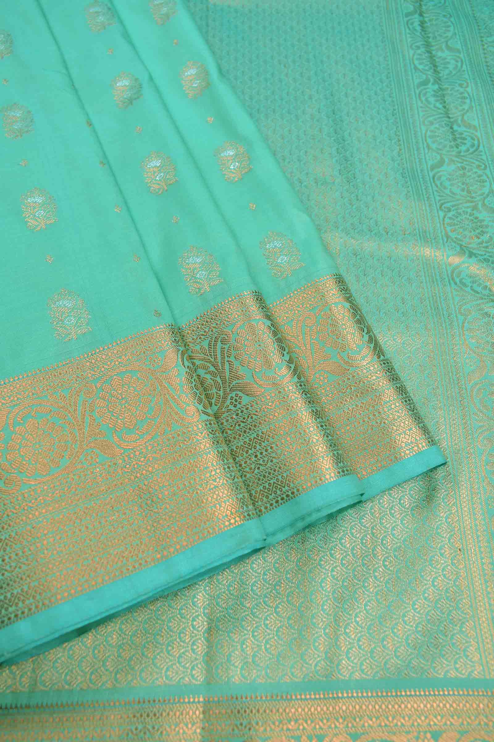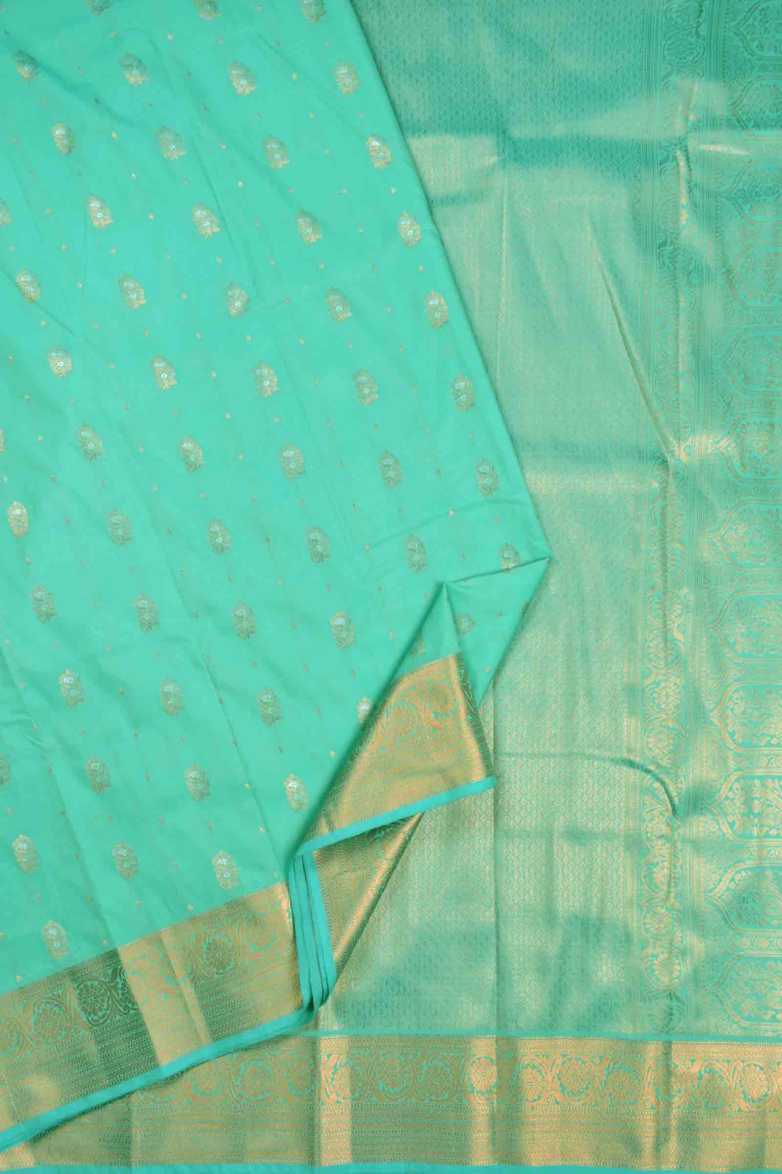 Turquoise Blue Semi Silk Mini Butta Zari Border Saree