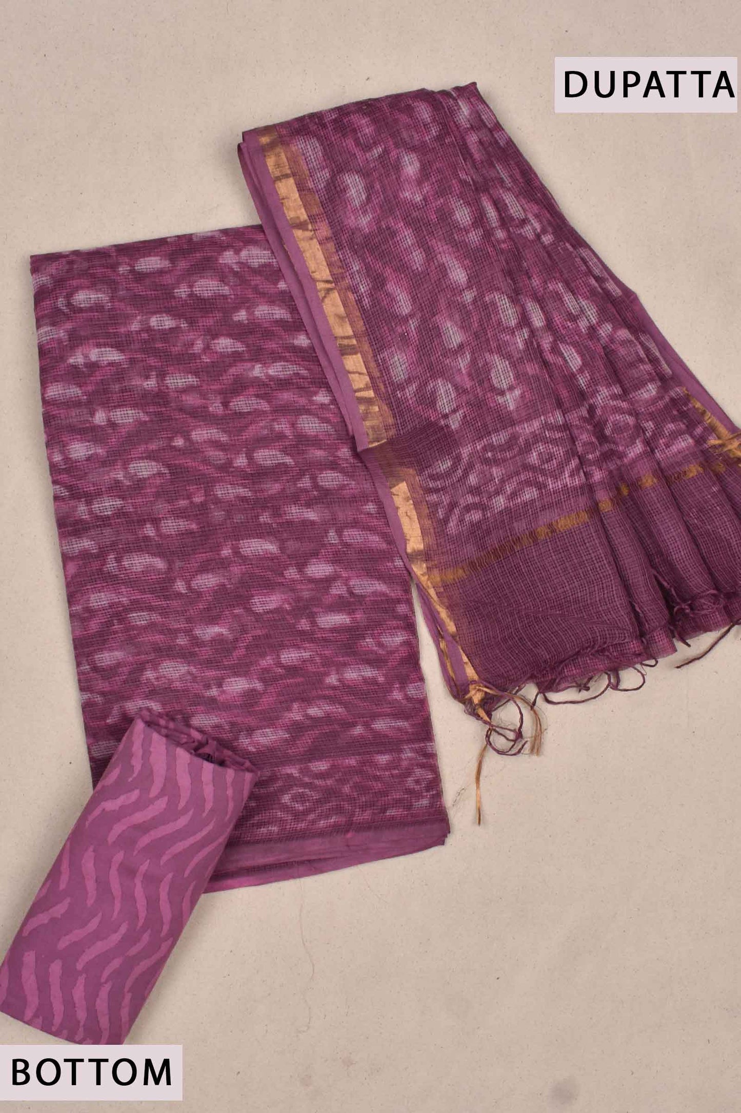 - Fabric: Kota Doriya Top & Dupatta. Cotton Bottom Material.