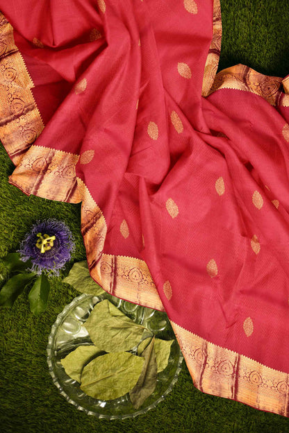 Pink Light Weight Pure Silk Saree Contrast Green Blouse Saree