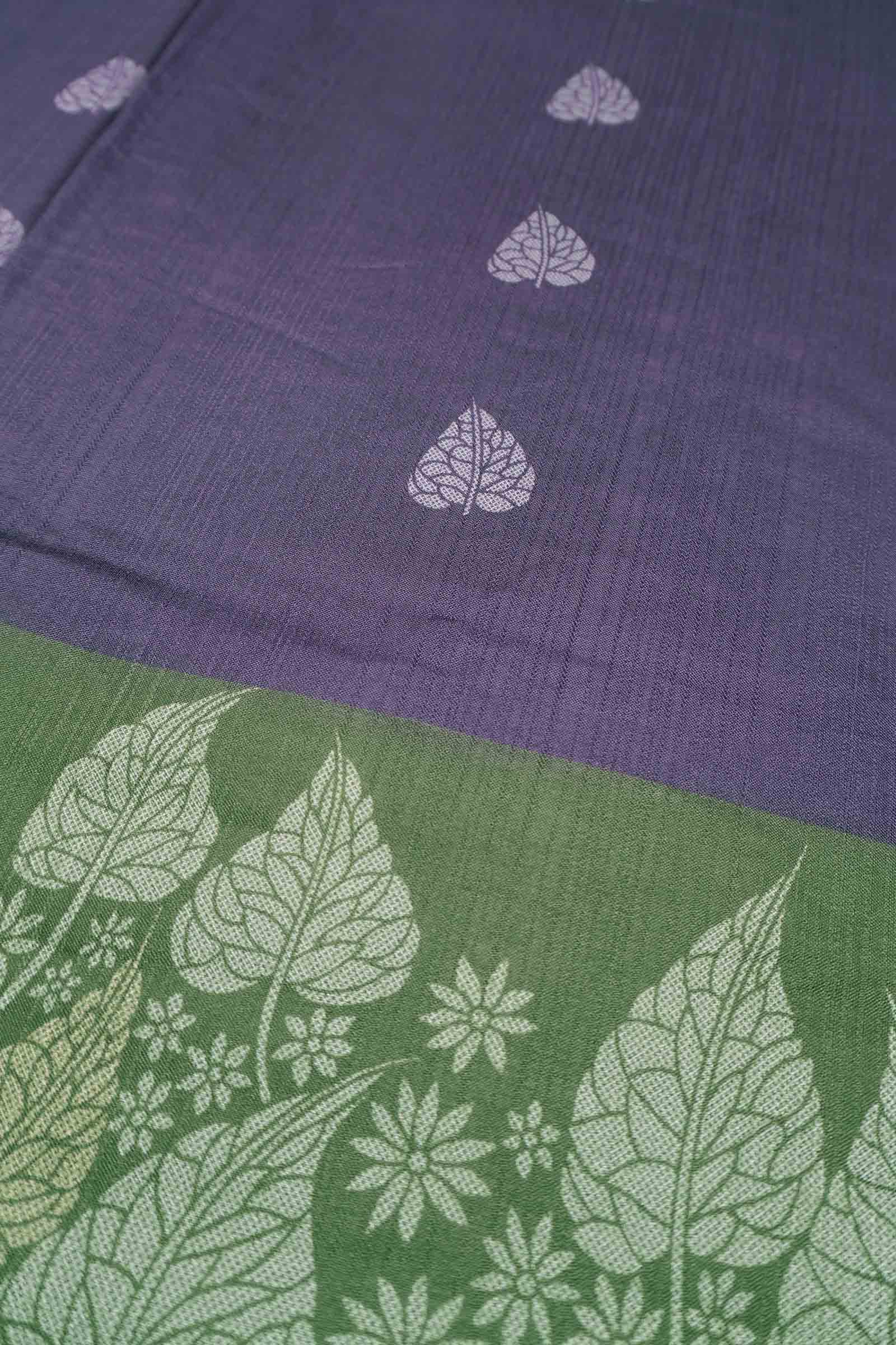 Violet Printed Cotton Foliage Border Zari Border Saree