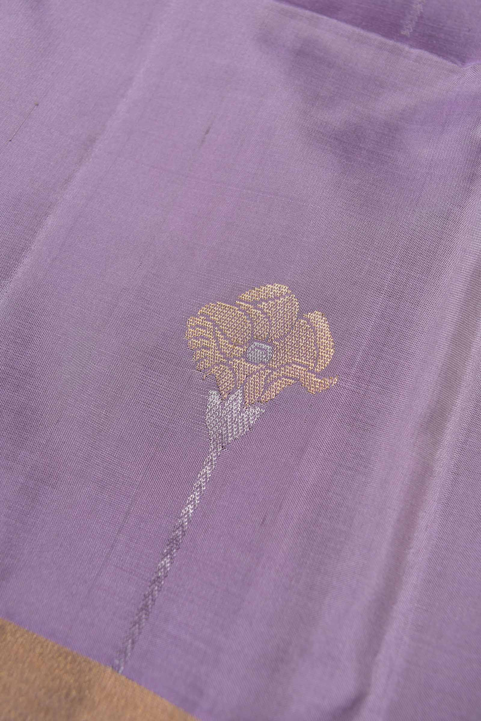 Violet Pure Soft Silk Butta Zari Border Green Fancy Pallu Saree NAA196