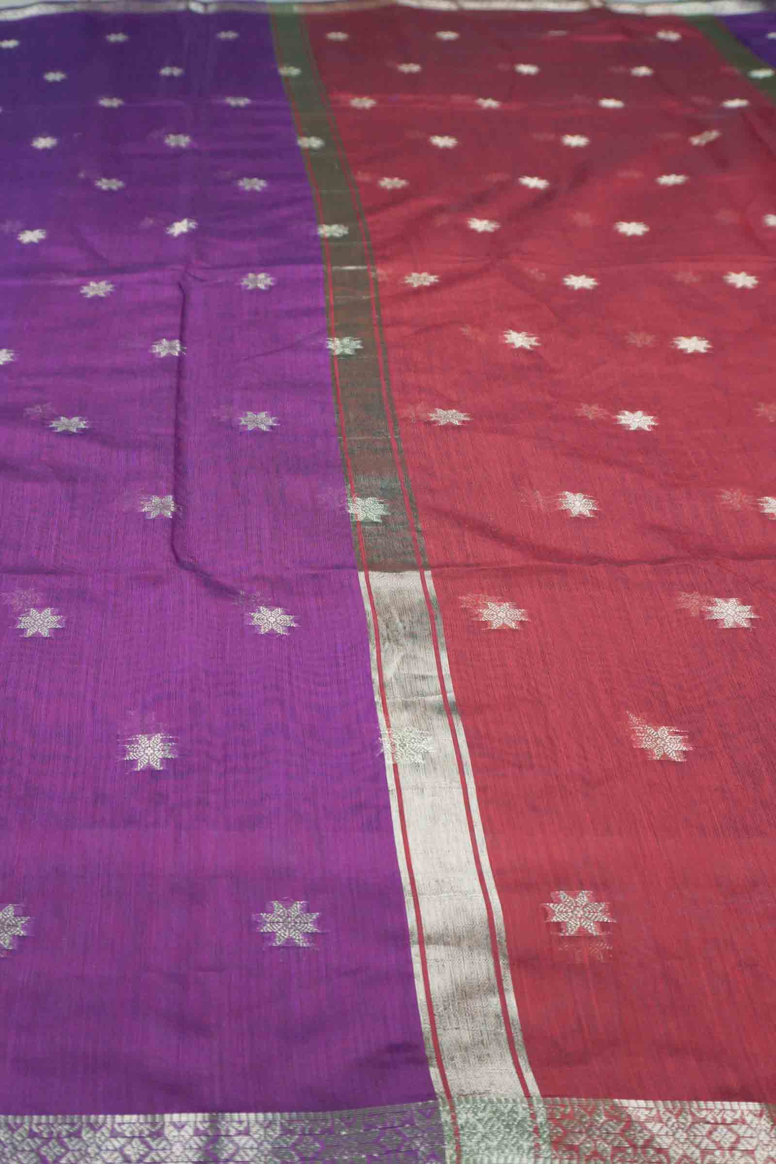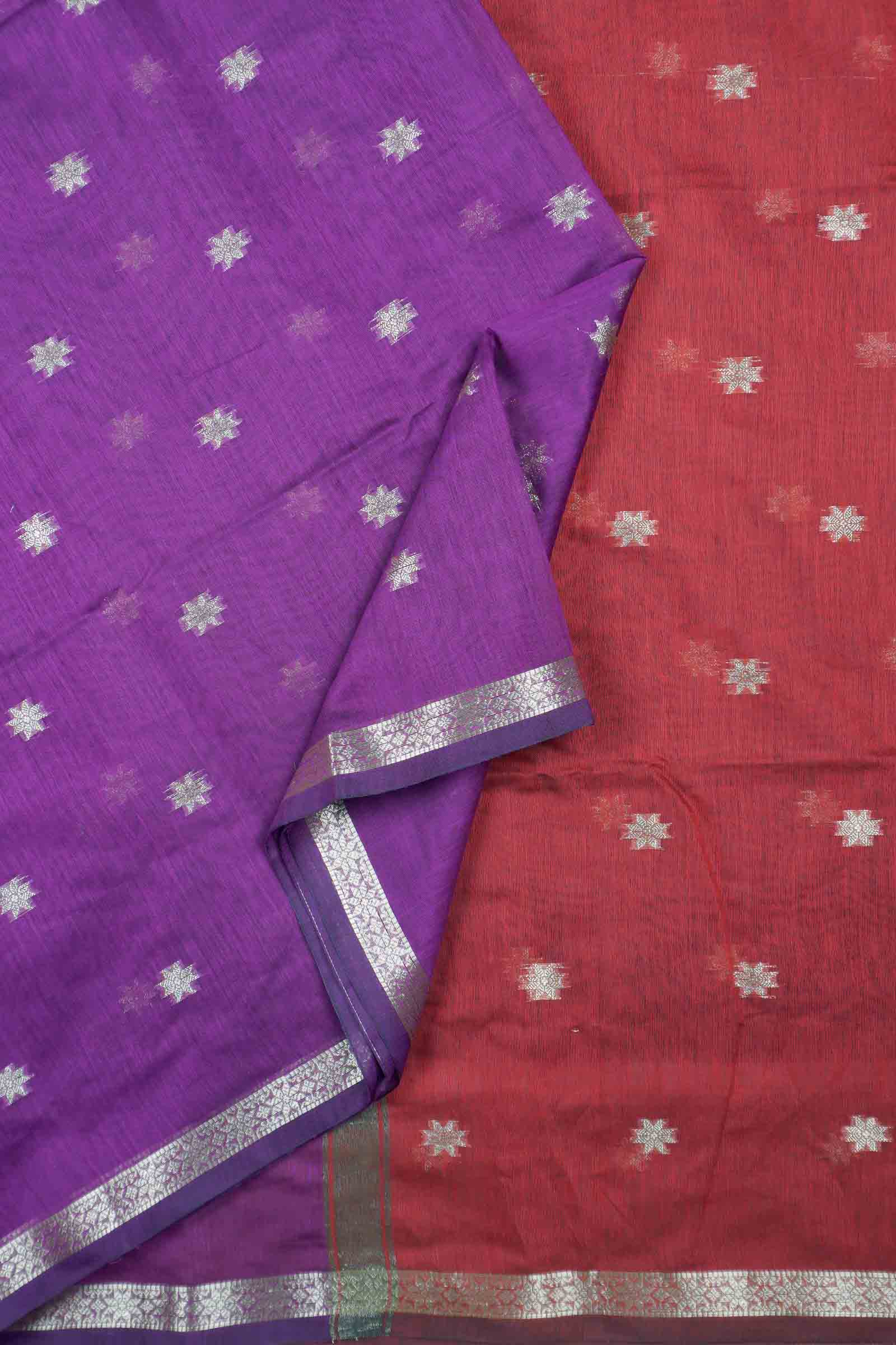 Violet Semi Maheswari Cotton Sampada Puspa Butta Contrast Pallu Saree