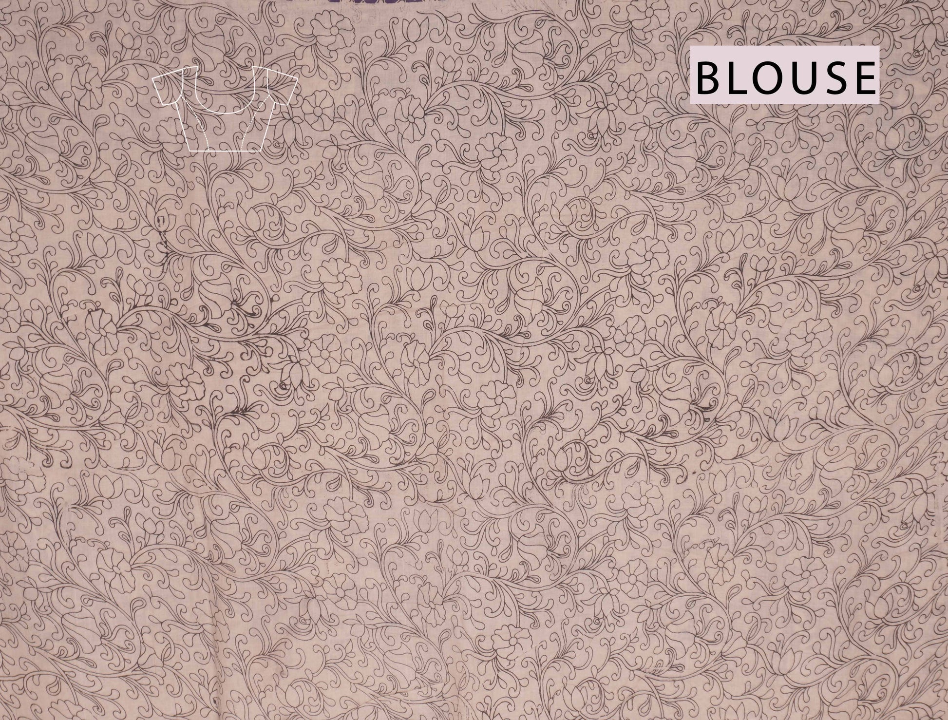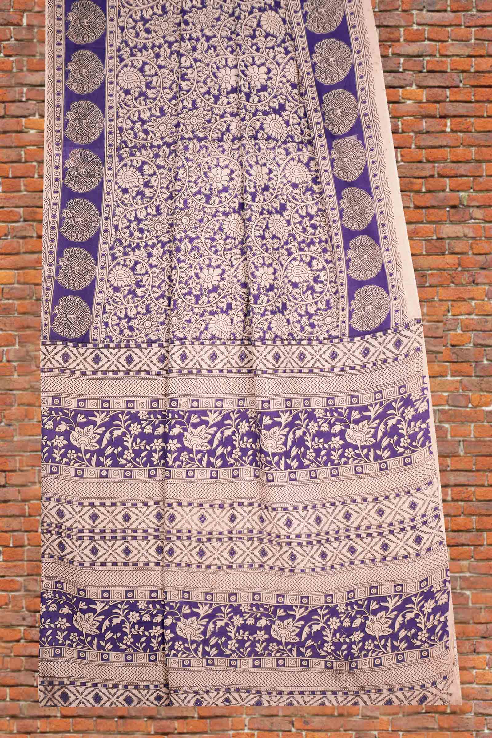 Violet Kalamkari Pure Cotton Floral Print Peacock Border Saree