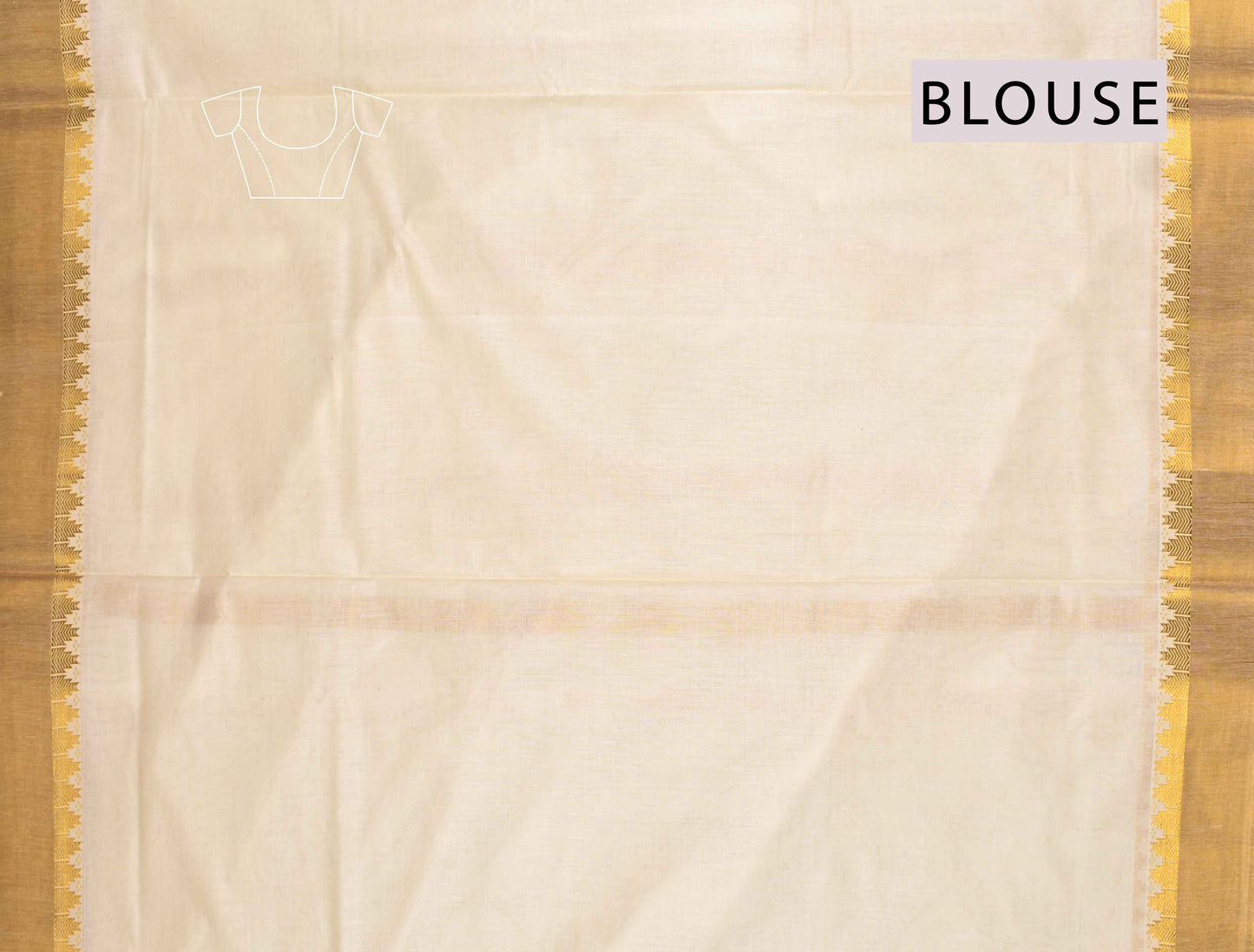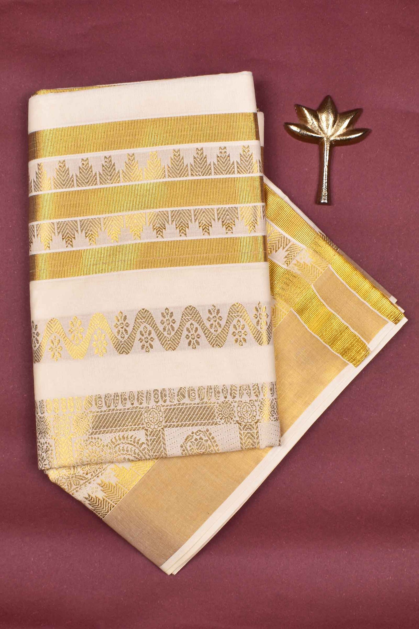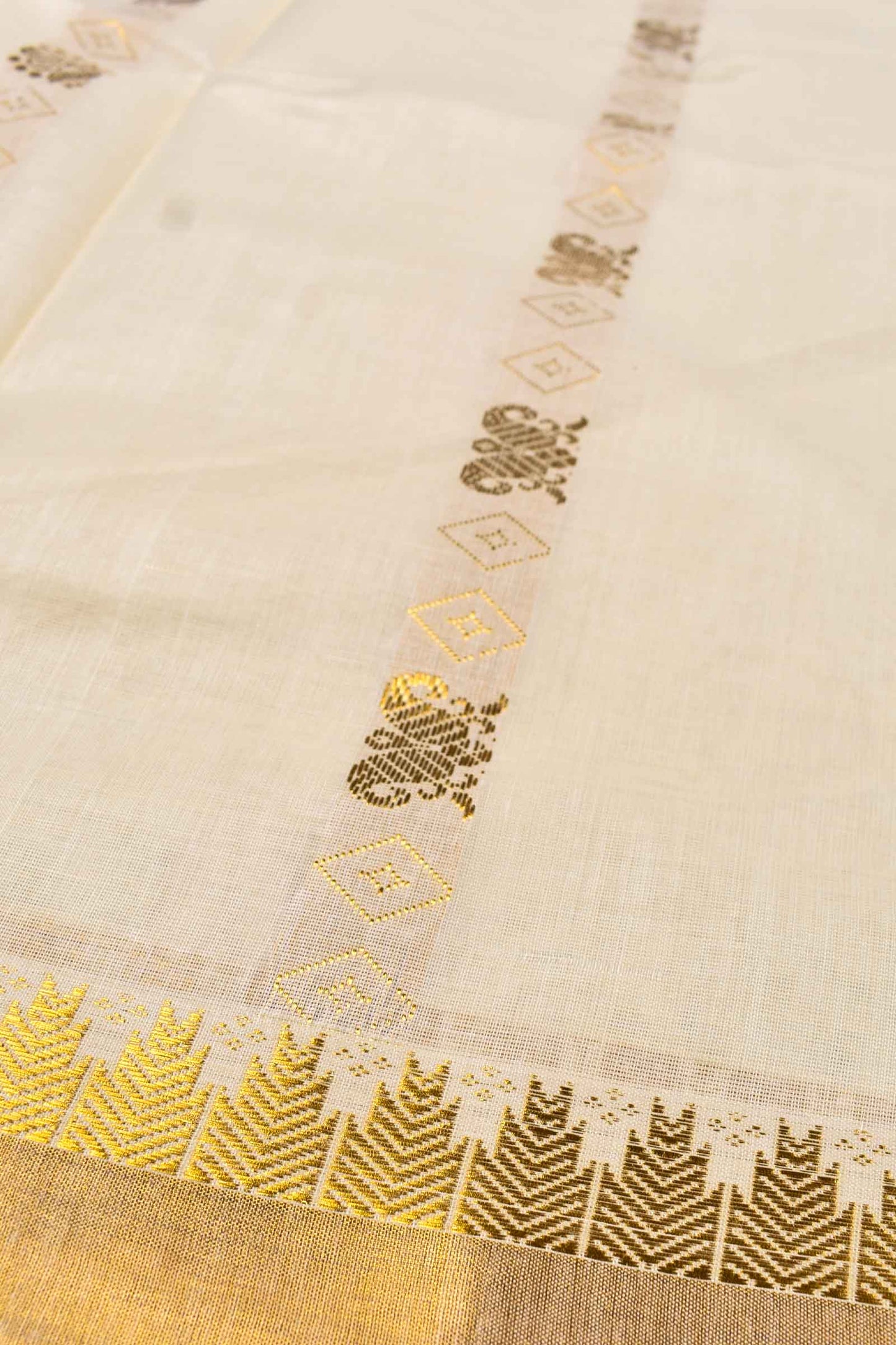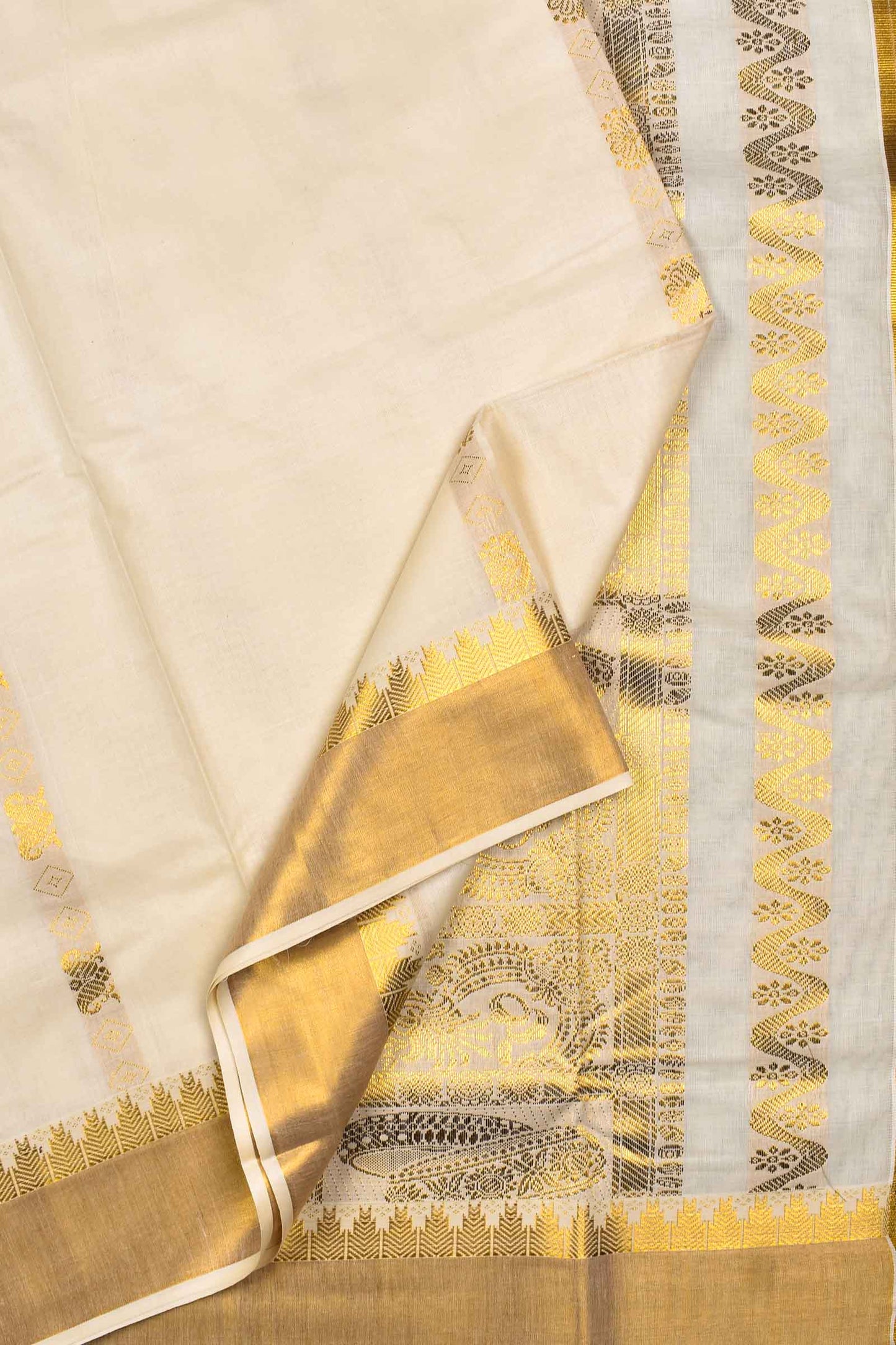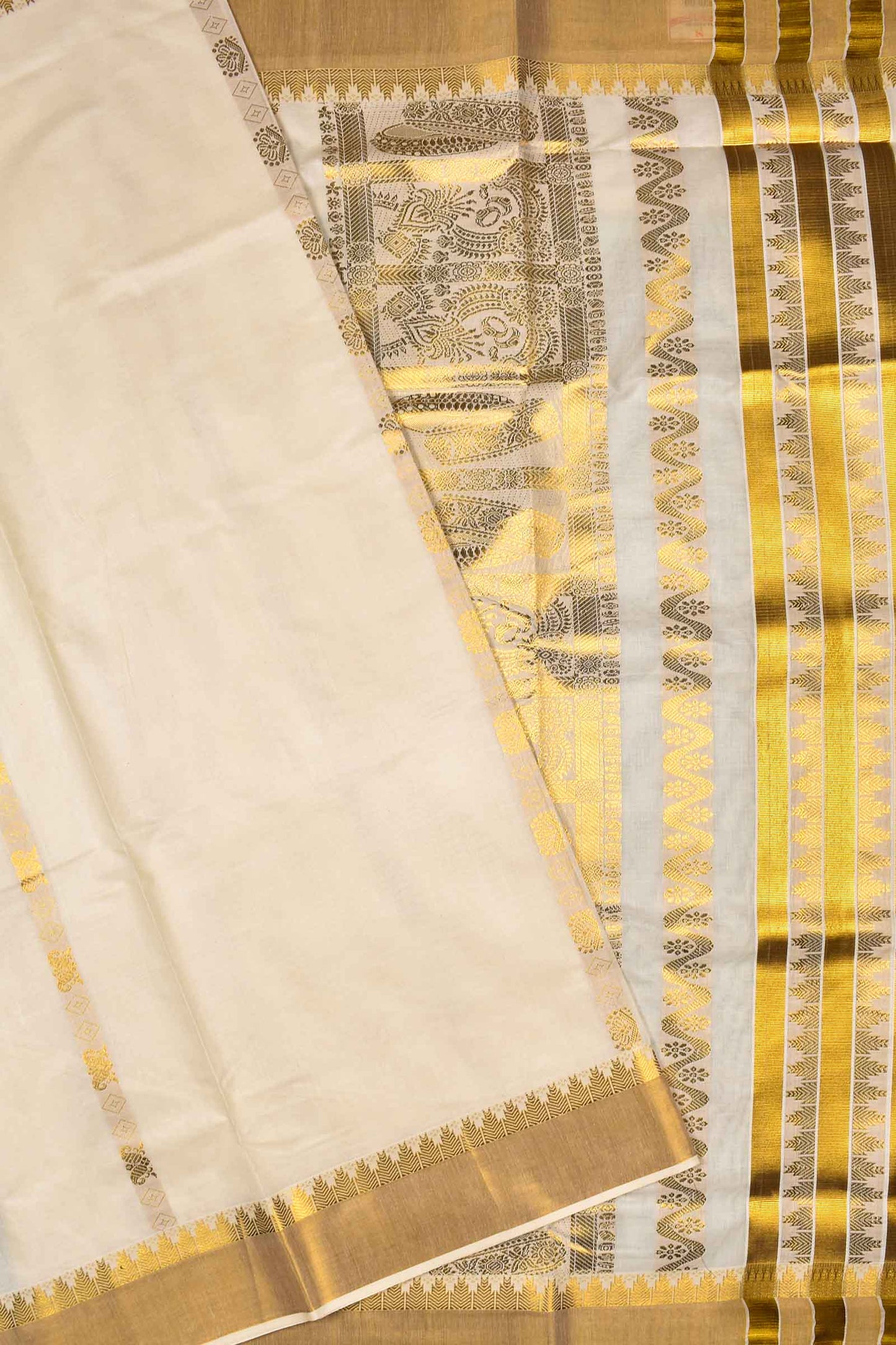 Off White Kerala Cotton Thalampoo Reku Border Rich Pallu Saree