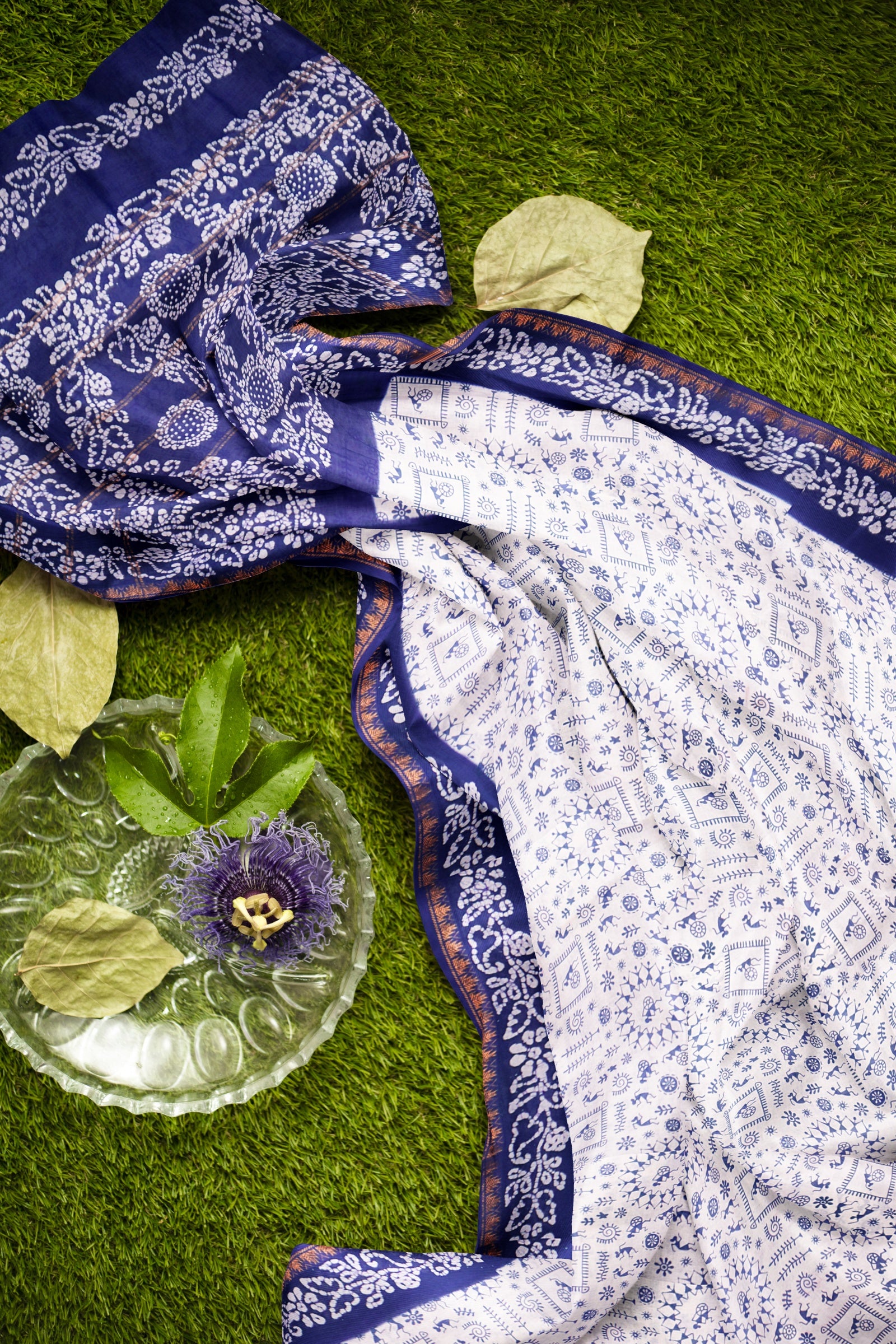 White Pure Sungudi Cotton Warli Print Zari Tower Border Saree