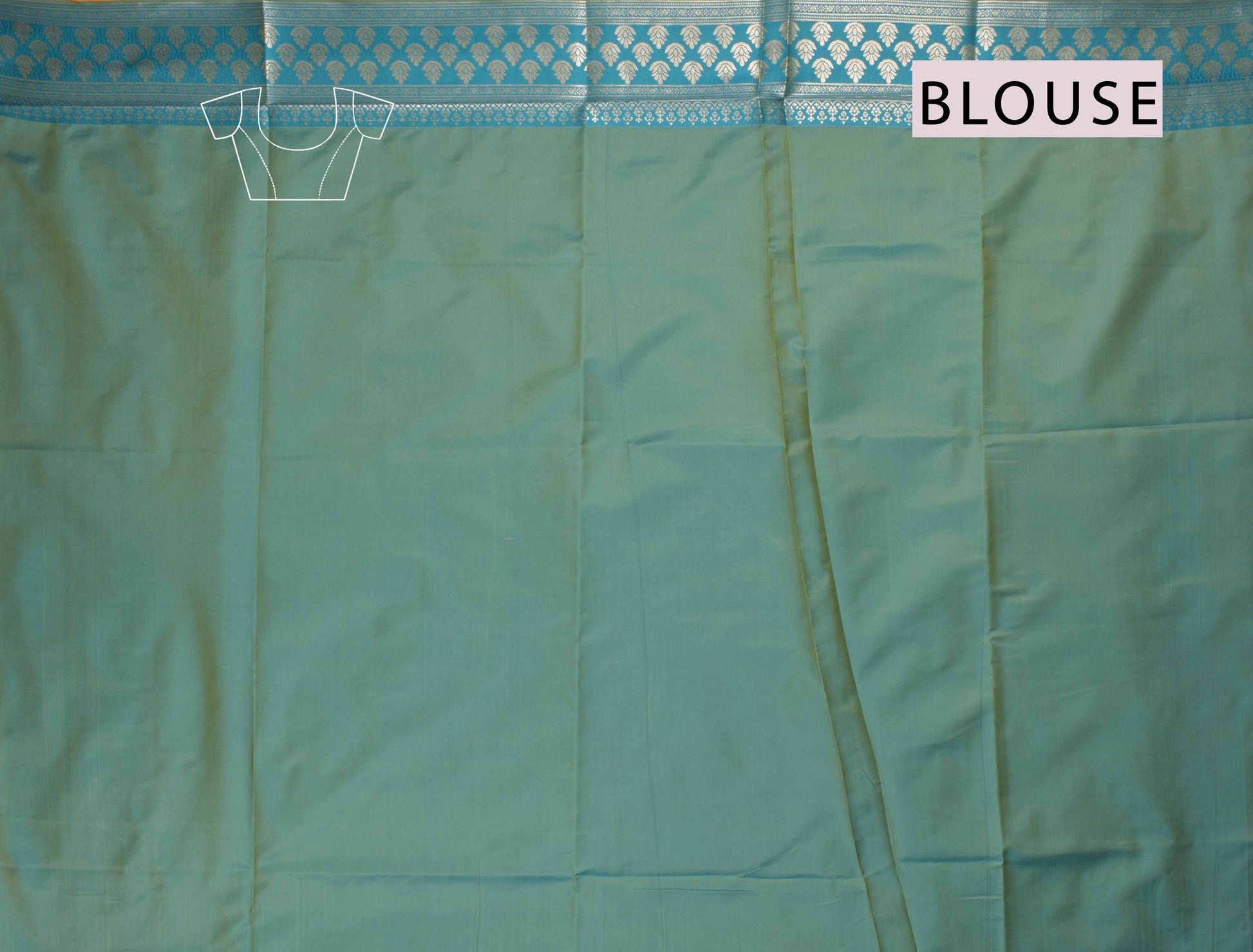 Yellow Peacock Butta Green Contrast Pallu Semi Soft Silk Saree